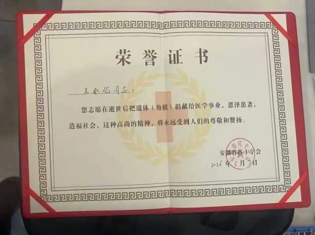 黄山八旬老人捐献遗体角膜,用大爱点亮生命之光