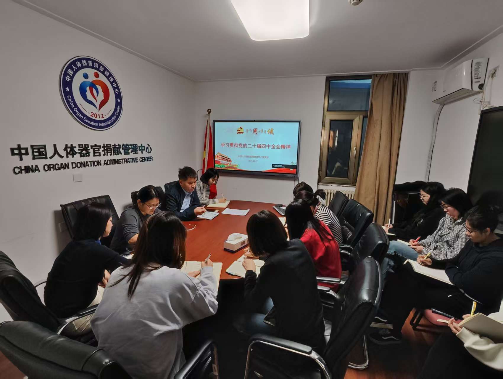10月27日,中国人体器官捐献管理中心党支部组织专题支部活动,传达学习党的二十届四中全会精神,中心干部职工参加。支部书记侯峰忠主持。